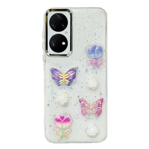 - 1x Funda TPU Huawei P50 Pro con Mariposa de Cristal Colorida 3D (Flores de Mariposa)