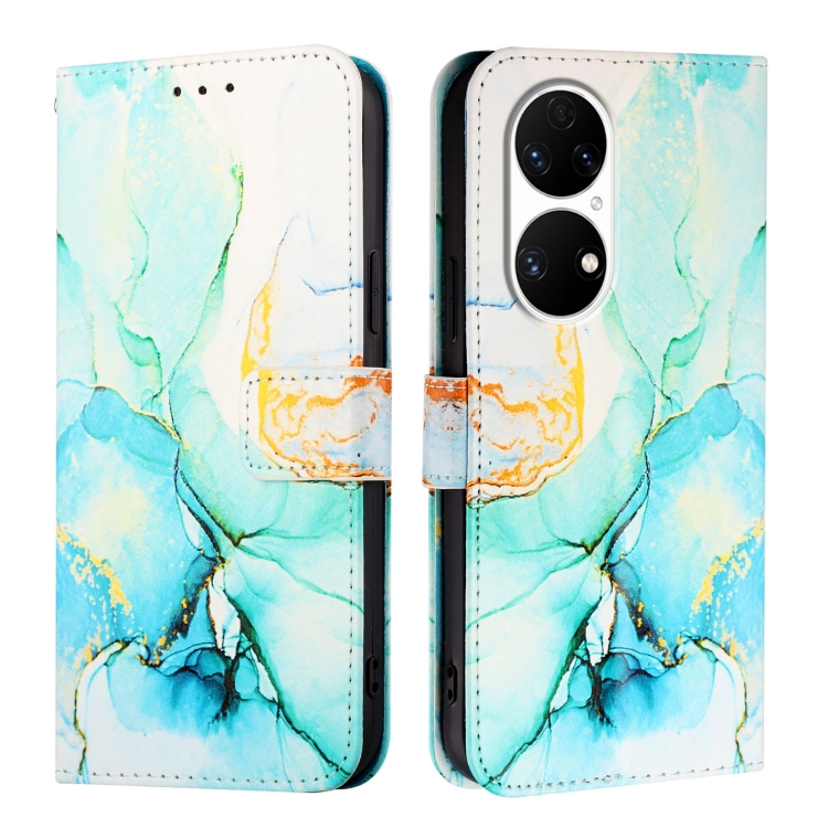 Funda de Cuero para Huawei P50 Pro Pt003 con Tapa y Patrón de Mármol (Verde)