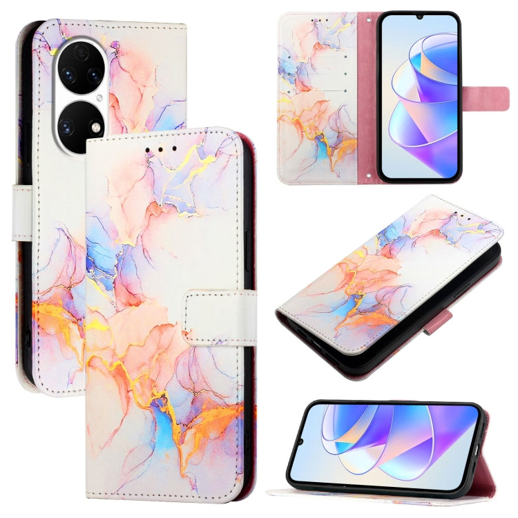 Funda de Cuero con Tapa para Huawei P50 Pro Pt003 con Patrón Mármol (Blanco)