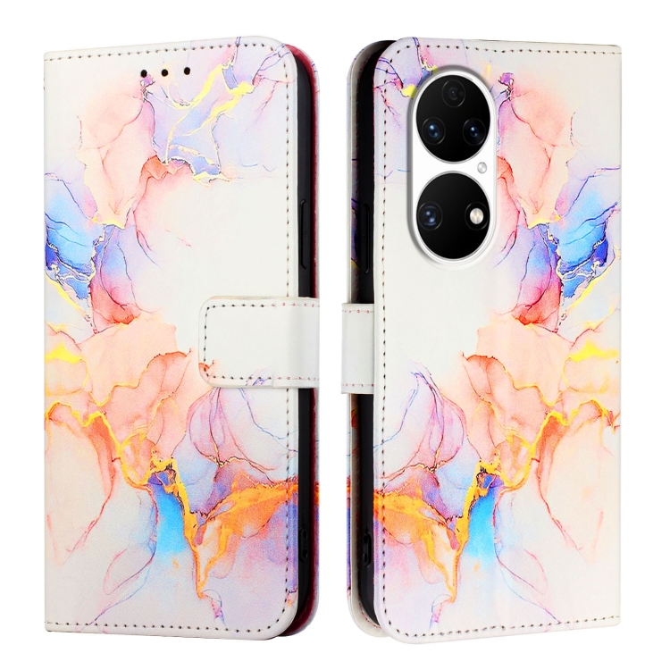 Funda de Cuero para Huawei P50 Pt003 con Tapa y Patrón de Mármol (Ls004 Mármol Blanco)