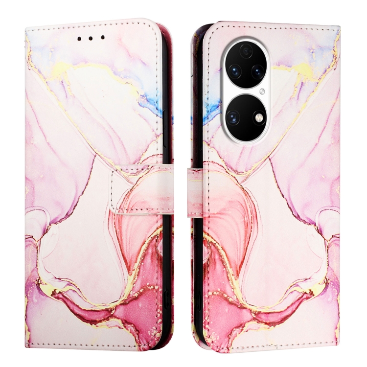 Funda de Cuero para Huawei P50 Pt003 con Tapa y Patrón de Mármol (Oro Rosa)