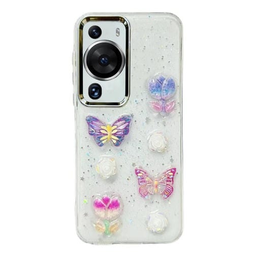 Funda TPU Huawei P60 / 60 Pro Mariposa Cristal Colorida 3D (Flores de Mariposa)