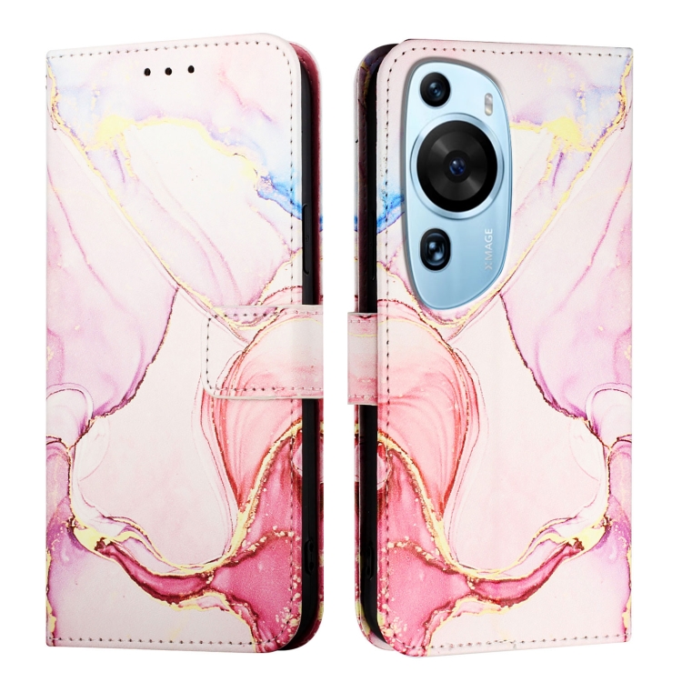 Funda de Cuero con Tapa para Huawei P60 Art Pt003 con Patrón de Mármol (Oro Rosa)