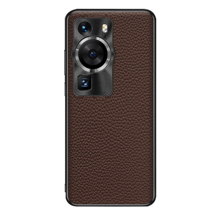 Funda para Teléfono Huawei P60 con Textura Litchi de Cuero Genuino (Café)