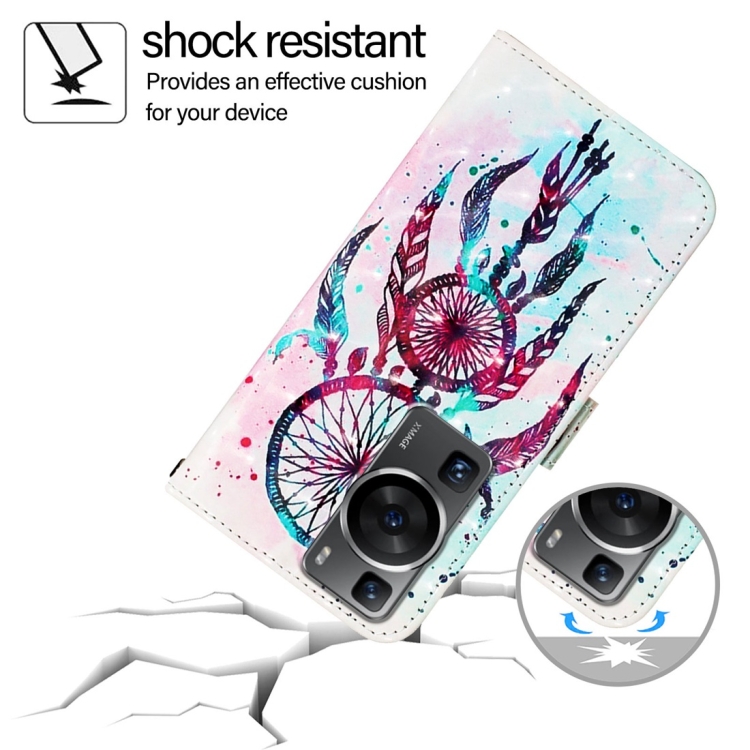 Funda de Cuero para Huawei P60 Pro con Tapa Horizontal y Pintura 3D (Campanas de Viento)