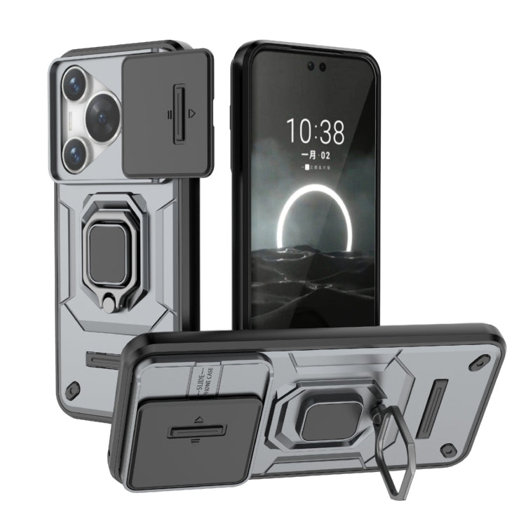 Funda para Huawei P70 5G Sliding Camshield TPU + PC a Prueba de Golpes con Soporte (Gris)