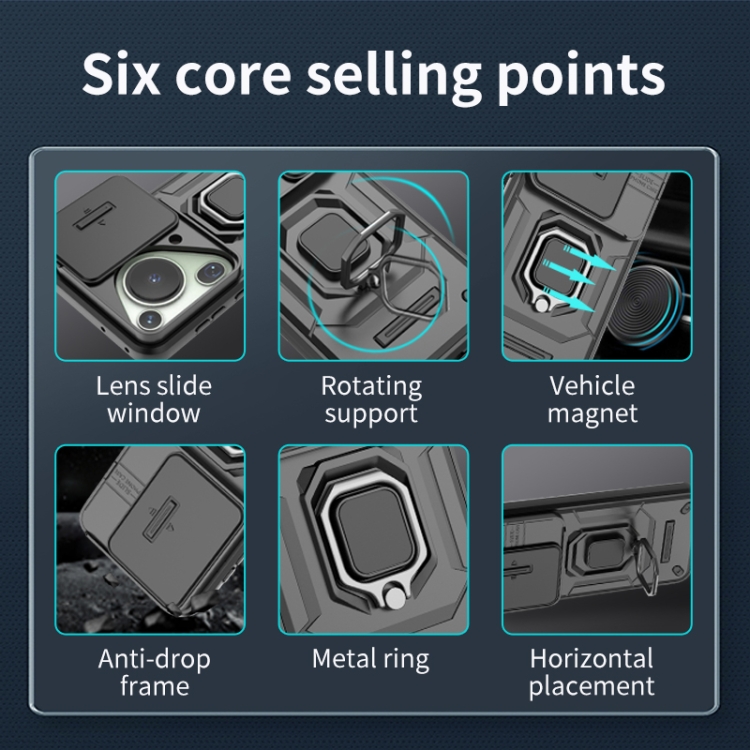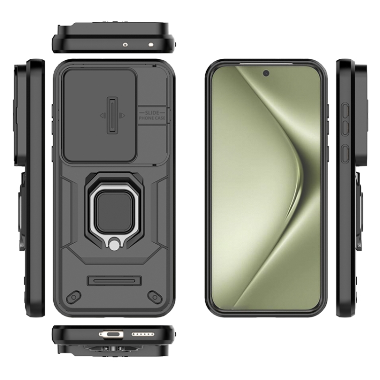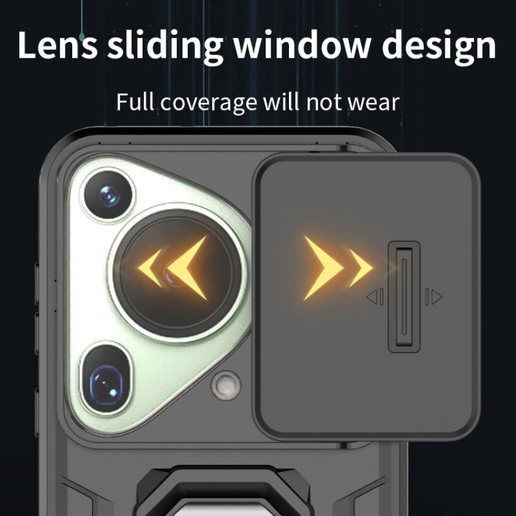 Funda para Huawei P70 Art 5G con Sliding Camshield, TPU + PC, Soporte, a Prueba de Golpes (Gris)