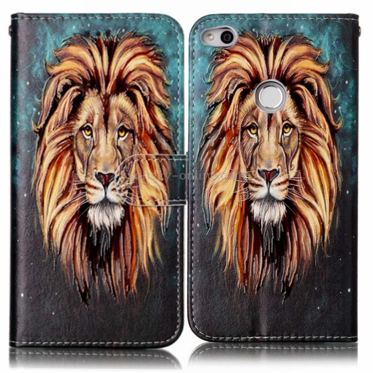 Funda de Cuero Huawei P8 Lite (2017) con Tapa Horizontal, Patrón León, Soporte, Ranuras y Marco