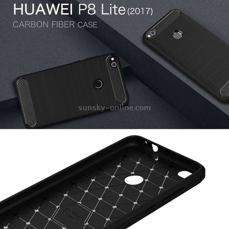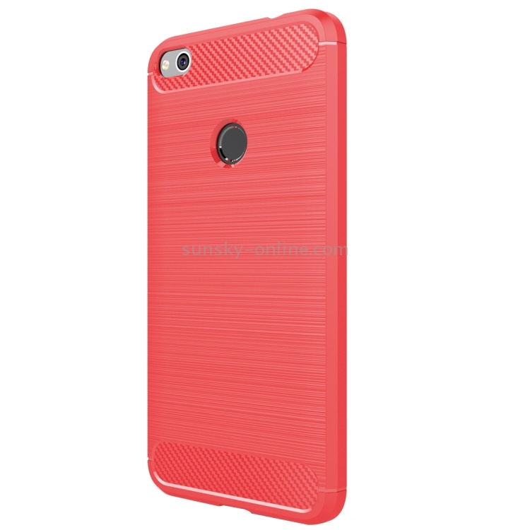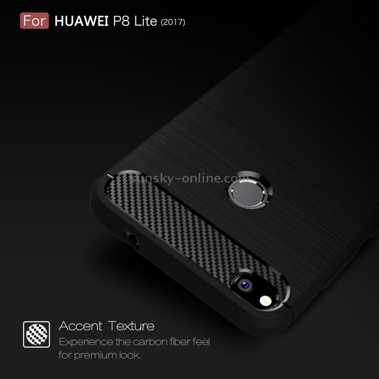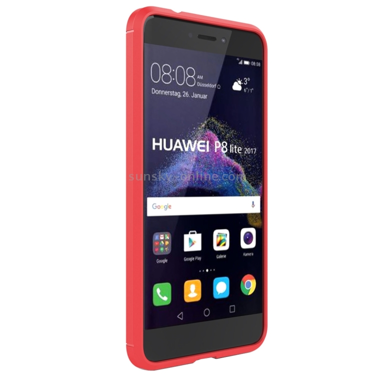 Funda Protectora TPU Huawei P8 Lite (2017) a Prueba de Golpes con Fibra de Carbono Cepillado (Rojo)
