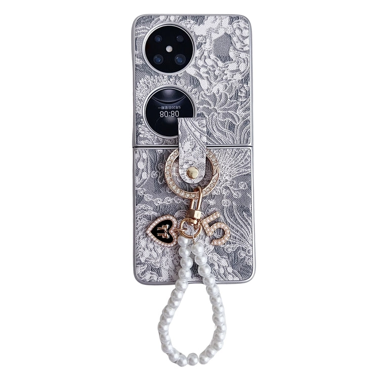 Funda para Huawei Pocket 2 Cobertura Total con Bordado y Cadena de Cuentas (Gris)