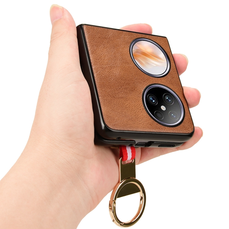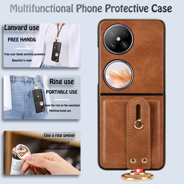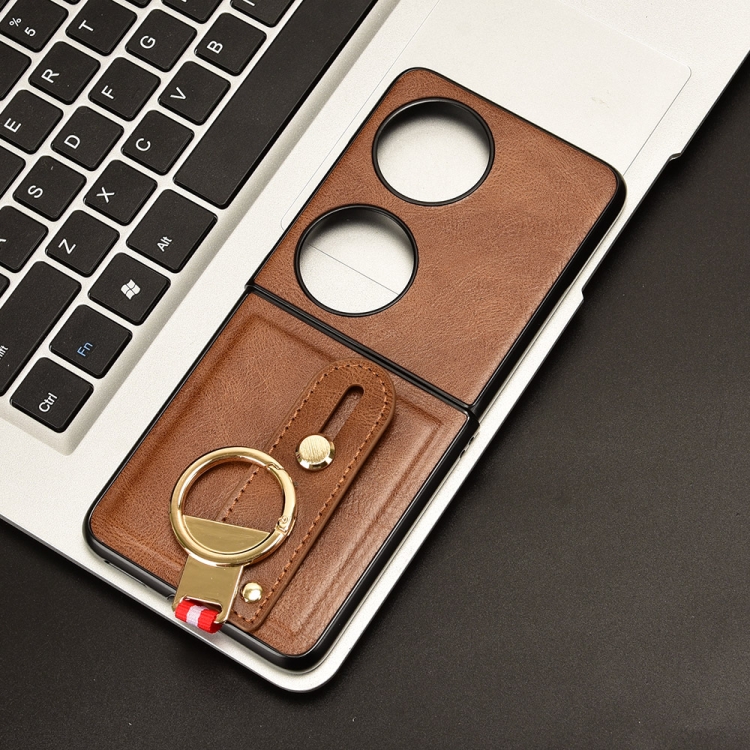 Funda Trasera de Cuero para Huawei Pocket 2 con Pulsera (Marrón)