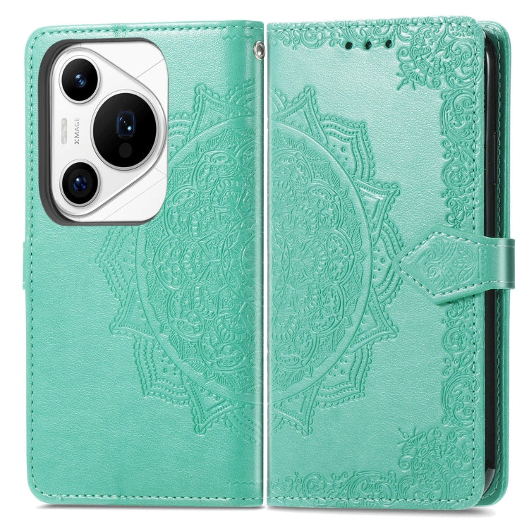 Funda para Teléfono Huawei Pura 70 Cuero con Relieve de Flores Mandala (Verde)