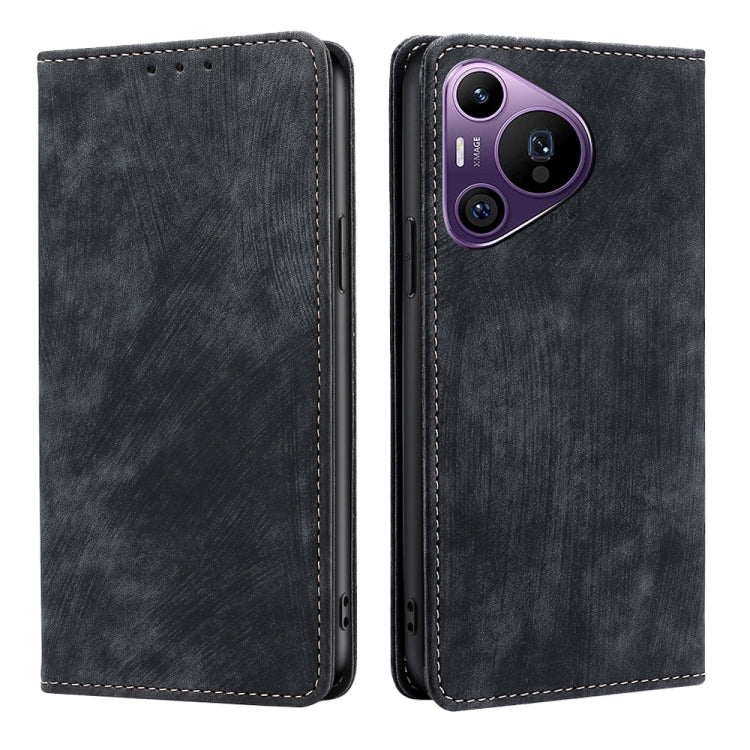 Estuche de Cuero Magnético para Huawei Pura 70 Pro y Pro+ con Cepillo Antirrobo RFID (Negro)