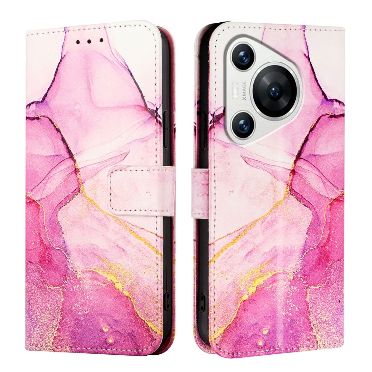 Funda de Cuero con Tapa para Huawei Pura 70 Pt003 con Patrón Mármol (Rosa Púrpura Dorado)