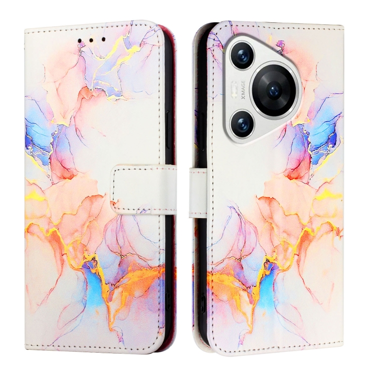 - 1x Funda de Cuero con Tapa para Huawei Pura 70 Pt003 con Patrón Mármol (Blanco)