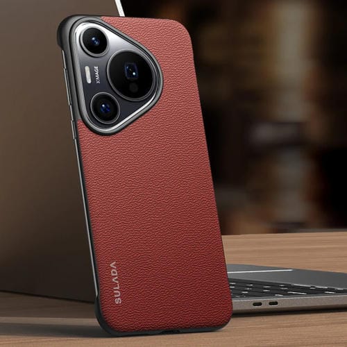 - 1x Funda para Huawei Pura 70 Sulada Capa Superior sin Marco de Cuero de Vaca + PC (Rojo)