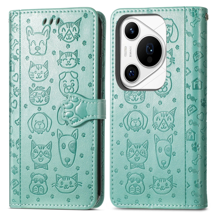 Funda de Cuero para Huawei Pura 70 Ultra con Relieve Perros y Gatos (Verde)