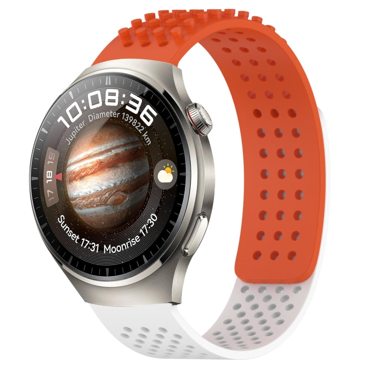 Correa de Silicona para Huawei Watch 4 Pro con Puntos 3D Transpirables y Orificios 22mm (Naranja + Blanco)