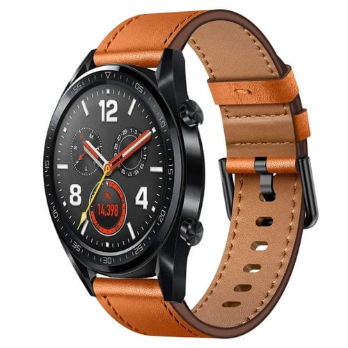 Correa de Reloj de Cuero para Huawei Watch GT 22mm con Conector Sx y Botón de Metal (Marrón)