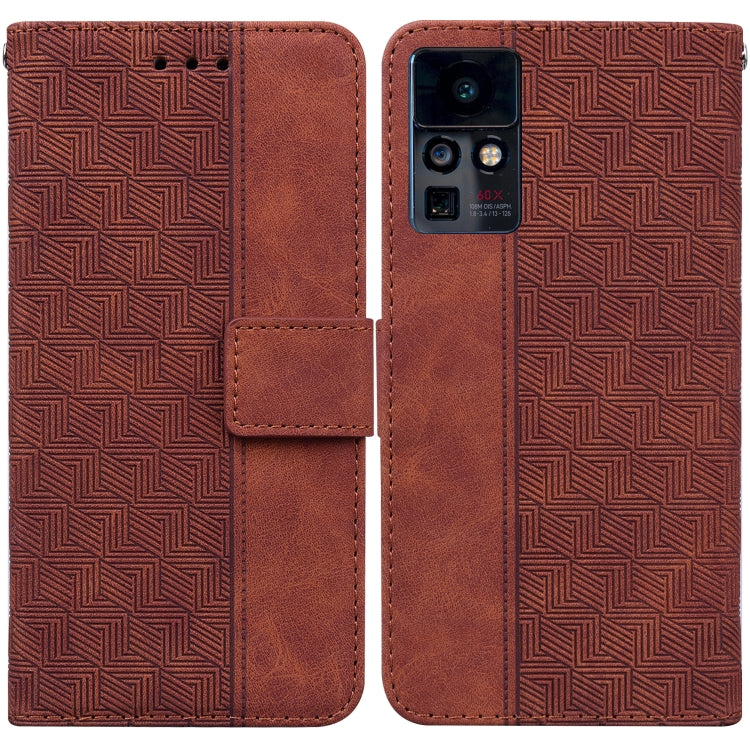 Estuche de Cuero Geométrico en Relieve para Infinix Cero X Neo / X6810 (Marrón)