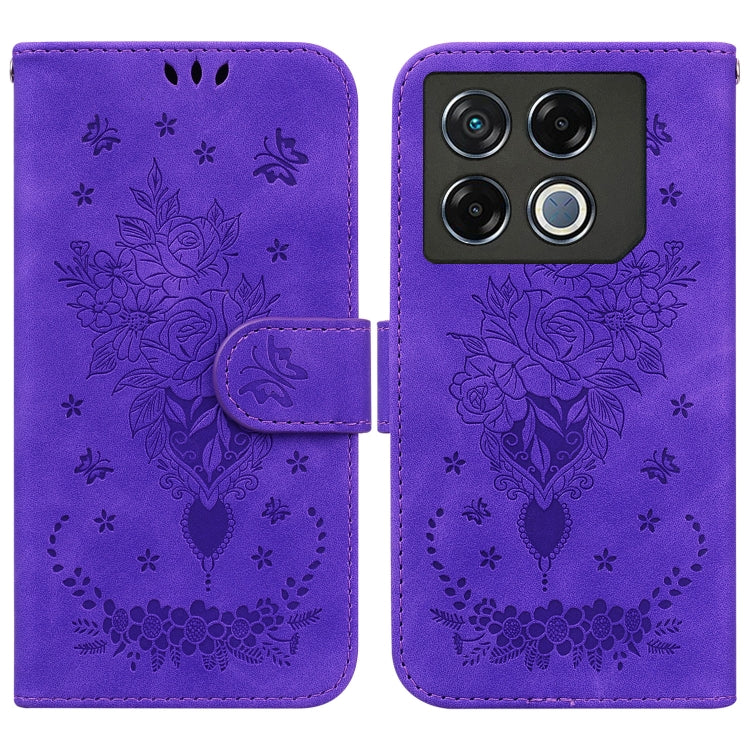 Funda de Cuero para Infinix GT 20 Pro Butterfly Rose con Relieve (Púrpura)