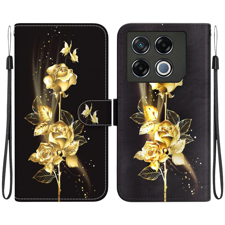 Funda de Cuero para Infinix GT 20 Pro con Dibujo Coloreado y Textura de Cristal (Mariposa Dorada Rosa)