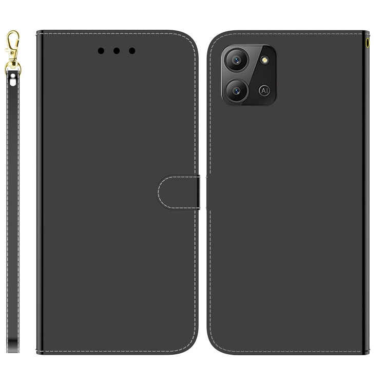 Funda de Cuero con Tapa Horizontal para Infinix Hot 11 (2022) Superficie de Espejo (Negro)