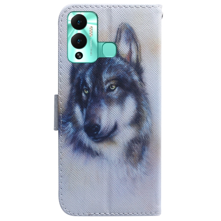 Juego de Tono Cuero Dibujo Color para Infinix Hot 12 (Lobo Blanco)