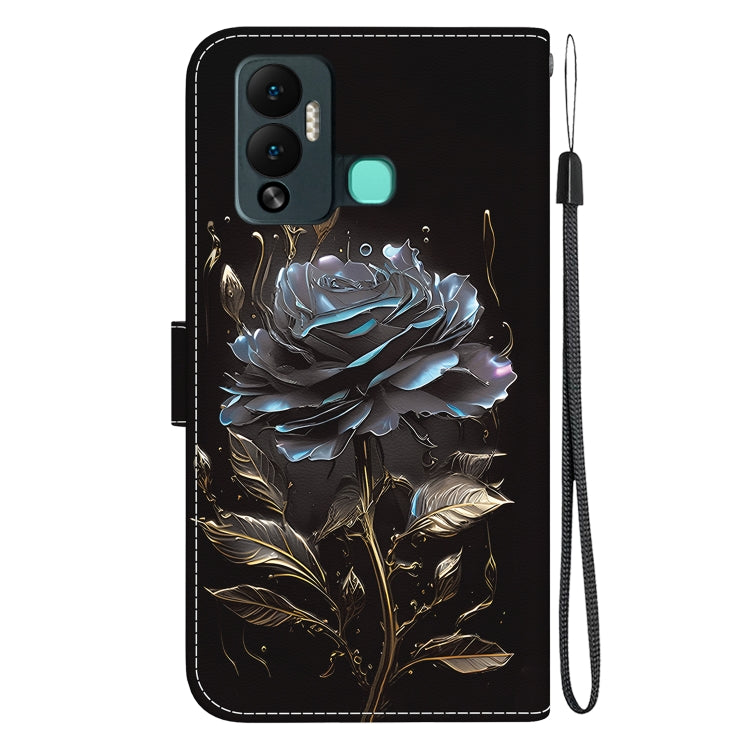 Estuche de Cuero para Infinix Hot 12 Play con Dibujo Coloreado y Textura de Cristal (Rosa Negra)