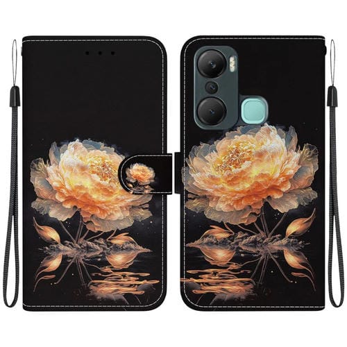 Funda de Cuero para Infinix Hot 12 Pro con Dibujo Coloreado y Textura de Cristal (Peonía Dorada)