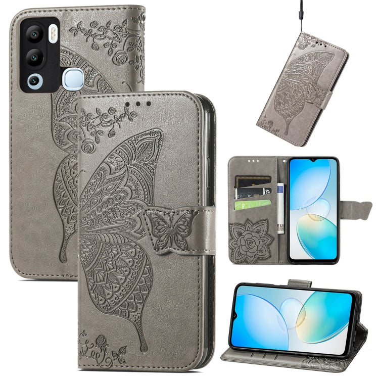 Estuche para Teléfono Infinix Hot 12I Butterfly Love Flower Cuero en Relieve (Gris)