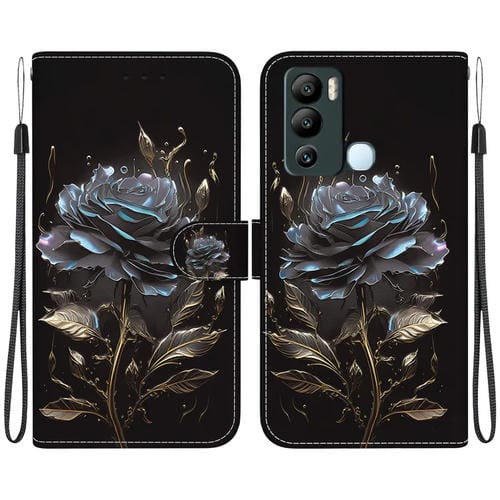 Funda de Cuero para Infinix Hot 12I con Dibujo Coloreado y Textura de Cristal (Rosa Negra)