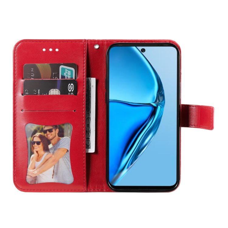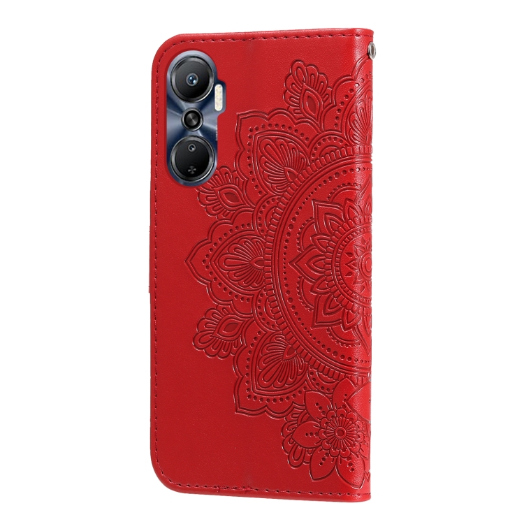 Estuche para Teléfono Infinix Hot 20 4G Cuero con Estampado de Flores de 7 Pétalos (Rojo)