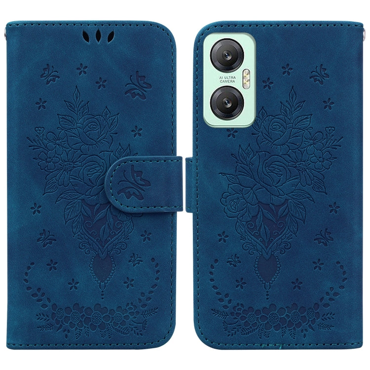 Estuche para Teléfono Infinix Hot 20 5G Butterfly Rose Cuero en Relieve (Azul)