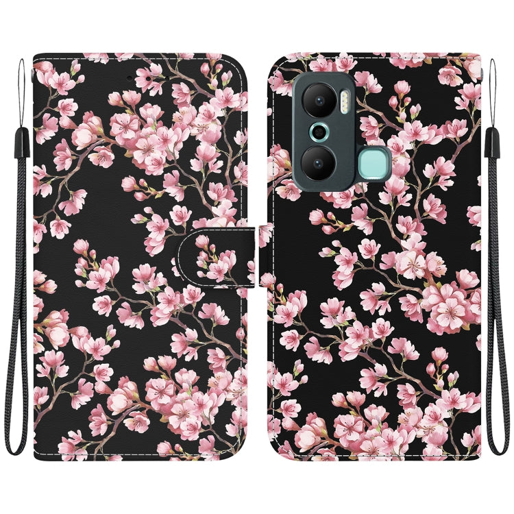 Estuche de Cuero para Infinix Hot 20 Play con Dibujo Coloreado y Textura de Cristal (Flor de Ciruelo)