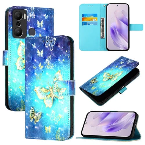 Funda para Infinix Hot 20 Play de Cuero con Tapa Horizontal y Pintura 3D (Mariposa Dorada)