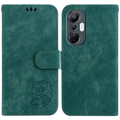 Funda de Cuero En Relieve para Infinix Hot 20S Little Tiger para Teléfono (Verde)