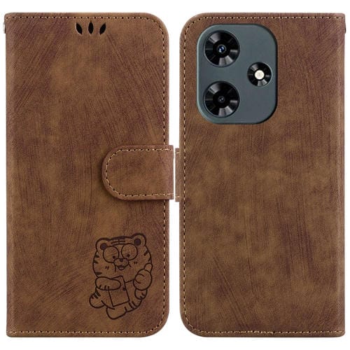 Funda de Cuero En Relieve para Infinix Hot 30 Little Tiger (Marrón)