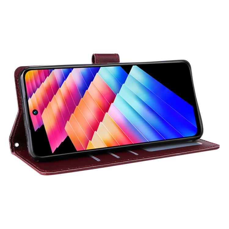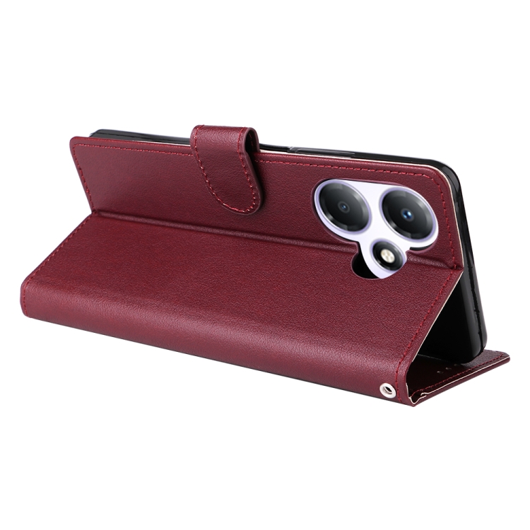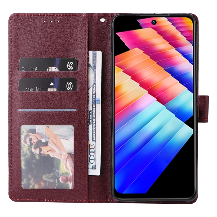 Estuche para Teléfono Infinix Hot 30 Play Cuero Multifuncional con 3 Ranuras para Tarjetas (Rojo Vino)