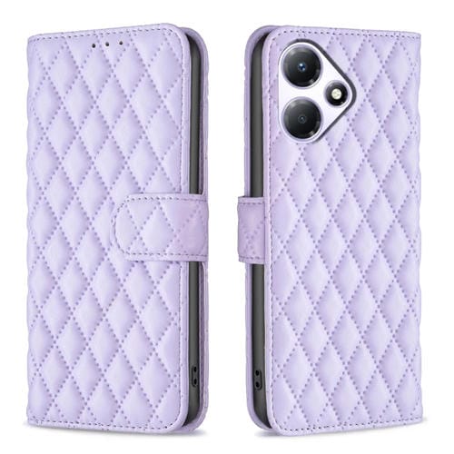 Funda de Cuero con Tapa para Infinix Hot 30 Play NFC Diamond Lattice (Púrpura)
