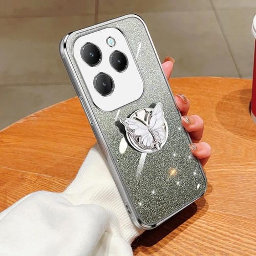 Funda TPU para Infinix Hot 40 con Soporte de Mariposa y Brillo Degradado (Plata)