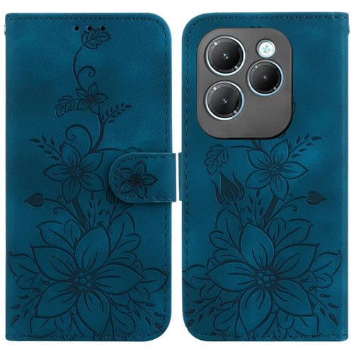 Funda para Teléfono Infinix Hot 40 Hot 40 Pro Lily Cuero En Relieve (Azul Oscuro)