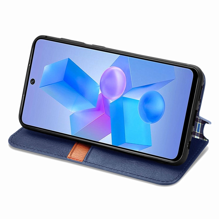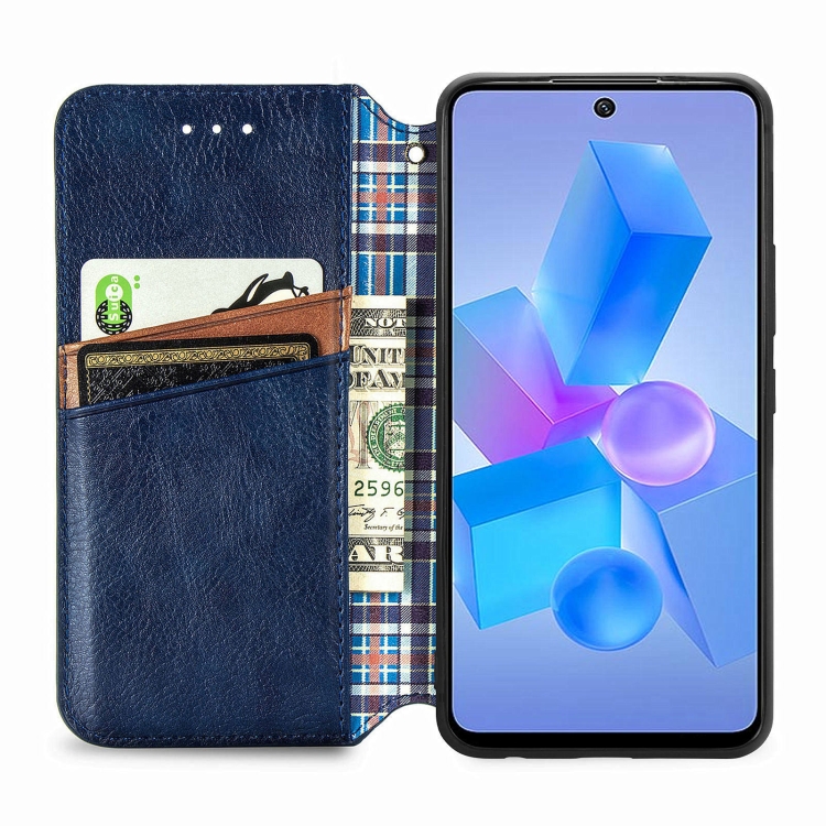 Funda de Cuero Magnético Prensado para Infinix Hot 40 Pro Cubic Grid (Azul)