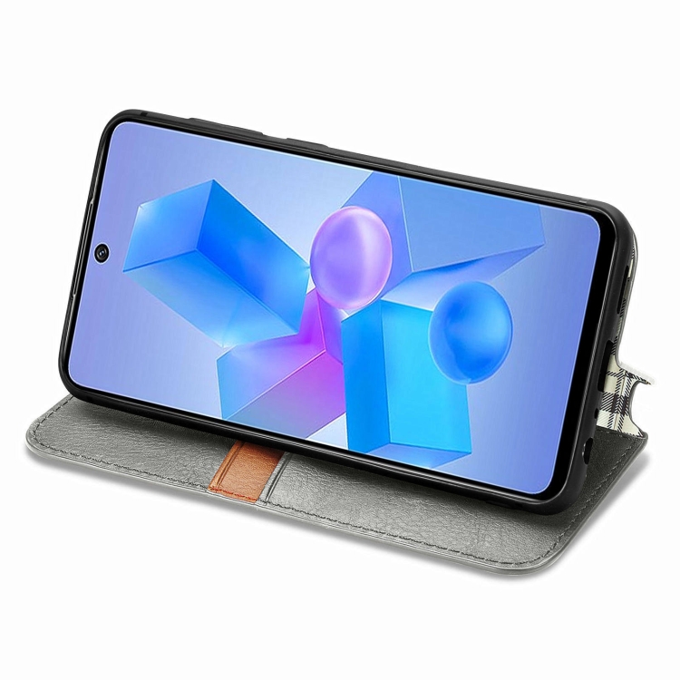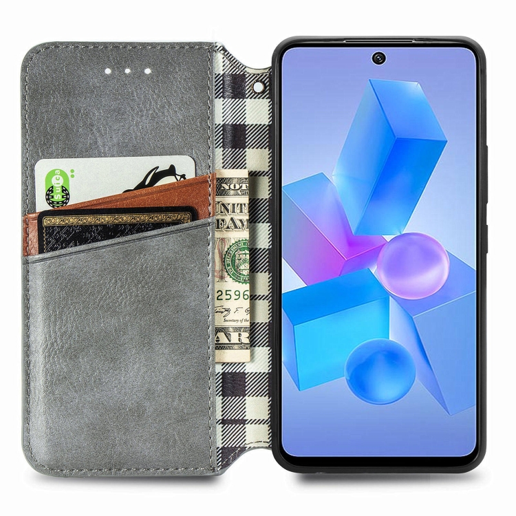 Funda de Cuero Magnético Prensado para Infinix Hot 40 Pro Cubic Grid (Gris)