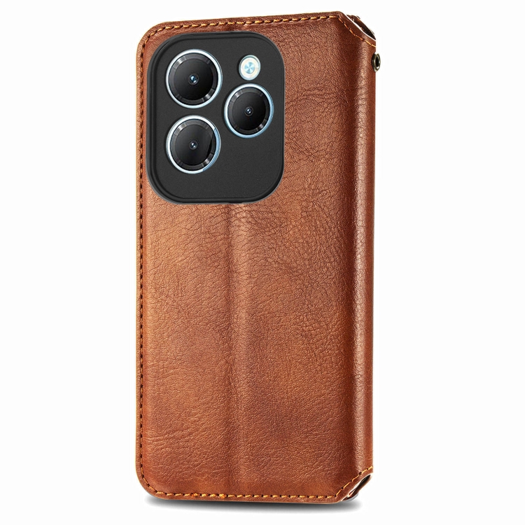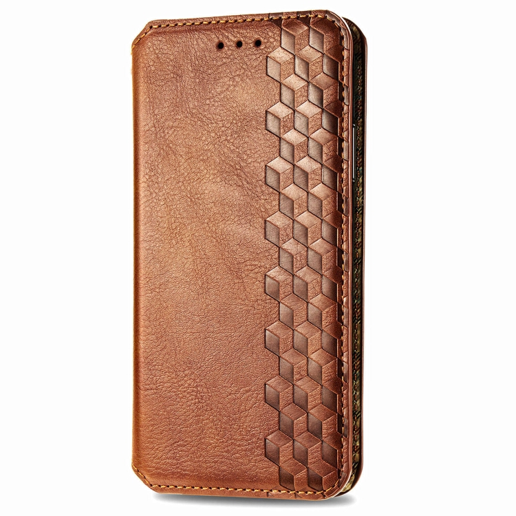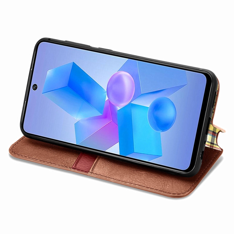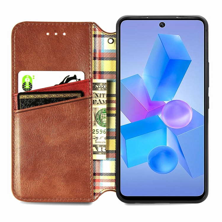 Funda de Cuero Magnético Prensado Cubic Grid para Infinix Hot 40 Pro (Marrón)