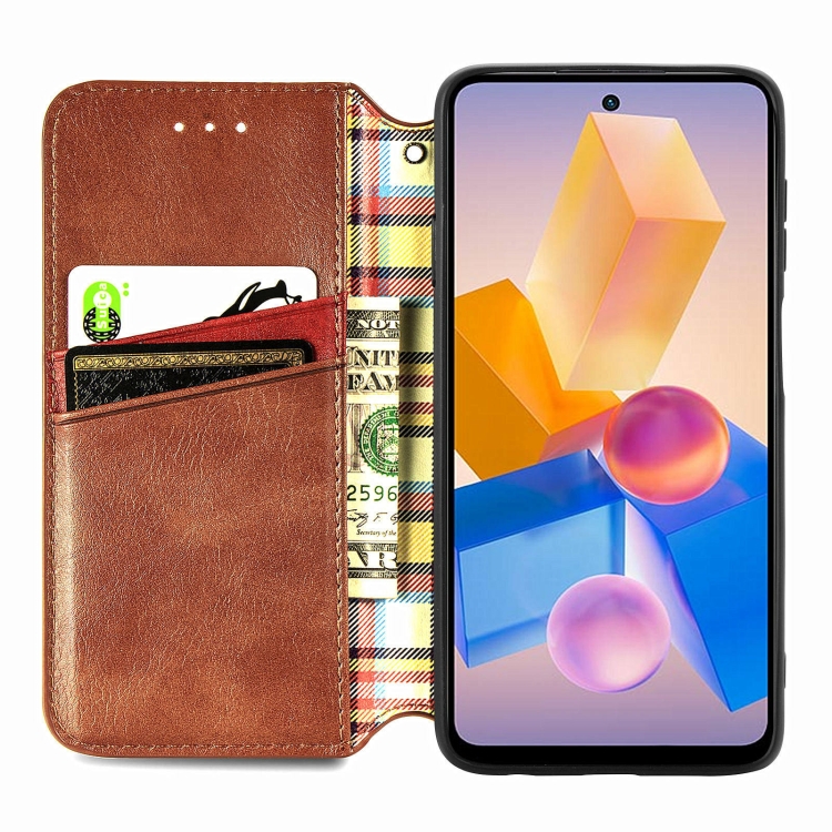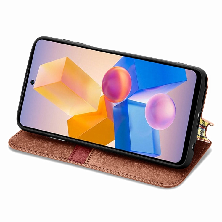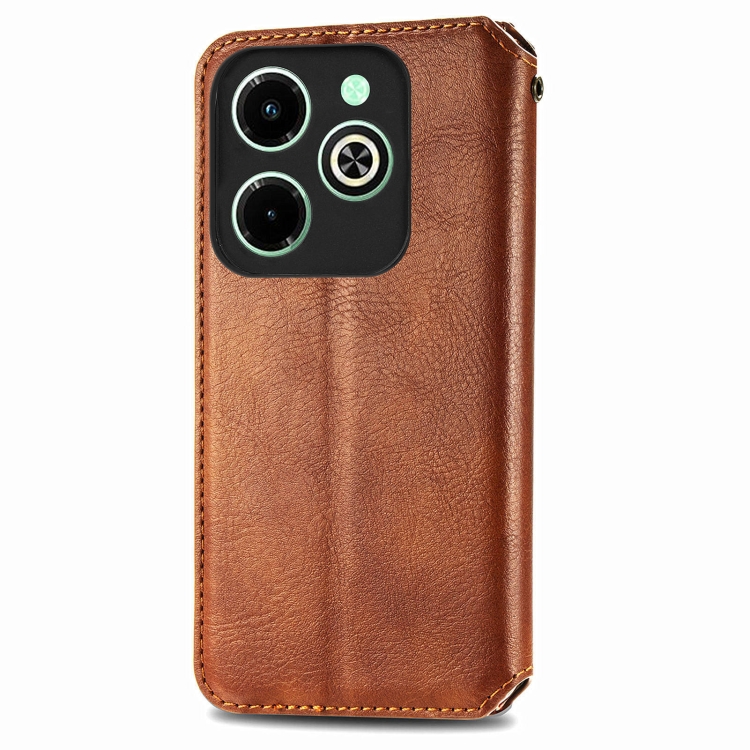 Funda de Teléfono Infinix Hot 40I Cubic Grid Cuero Magnético Prensado (Marrón)