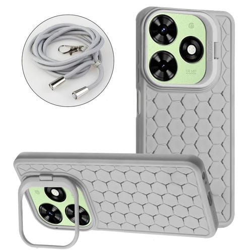 Funda TPU con Cordón para Infinix Hot 40I Honeycomb Radiating Holder (Gris)