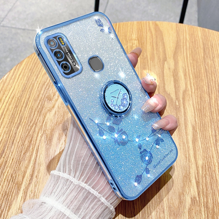 Estuche para Infinix Hot 9 Play con Anillo de Flor Inmortal y Brillo Degradado (Azul)