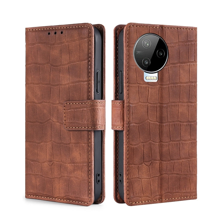 Funda de Cuero para Infinix Note 12 Pro 4G con Skin Feel Cocodrilo y Cierre Magnético (Marrón)