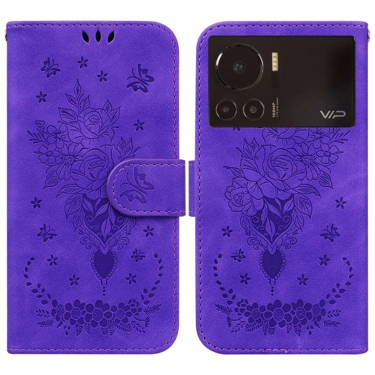 Estuche para Infinix Note 12 Vip Butterfly Rose de Cuero en Relieve (Púrpura)